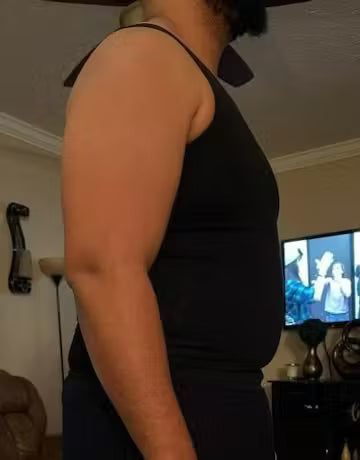 Un ventre apparent et une posture qui trahit le manque de confiance